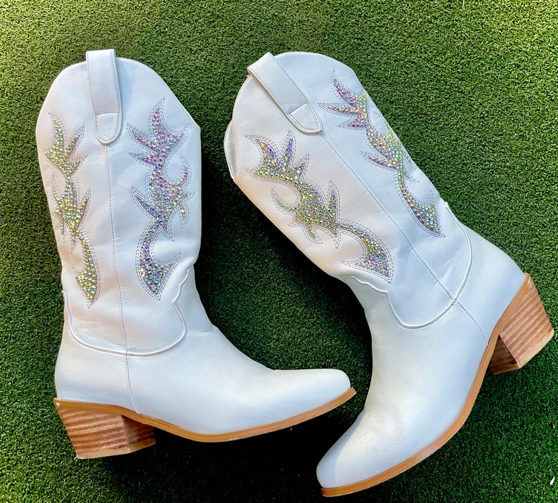 Nous vous présentons nos superbes bottes de cow-girl à paillettes et strass sur mesure, une fusion éblouissante de charme occidental et de style glamour. Fabriquées avec une attention méticuleuse aux détails, ces bottes sont l’expression ultime de l’individualité et du style avant-gardiste. Chaque paire est fabriquée avec du cuir de la plus haute qualité, garantissant durabilité et confort à porter toute la journée. Ce qui distingue ces bottes, c’est leur finition scintillante envoûtante, qui capte la lumière à chaque pas, créant un éclat captivant qui ne manquera pas de faire tourner les têtes. Mais ce sont les ornements complexes en strass qui rendent ces bottes de cow-girl extraordinaires. Posées à la perfection à la main, ces pierres précieuses scintillantes forment des motifs et des designs accrocheurs, ajoutant une touche de luxe et d’élégance à chacune de vos foulées. Que vous préfériez des motifs classiques ou des monogrammes personnalisés, nos artisans qualifiés peuvent donner vie à votre vision unique.