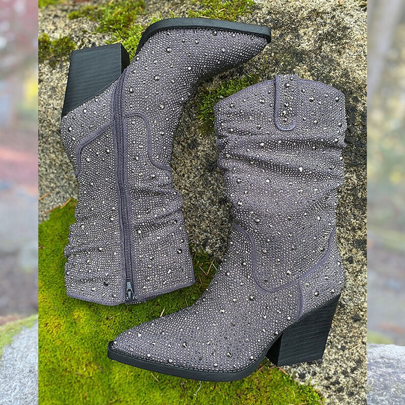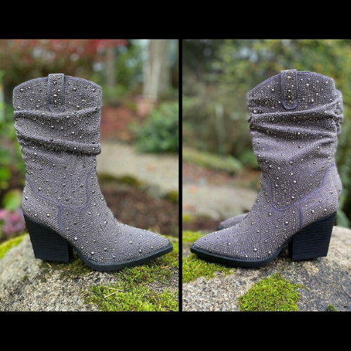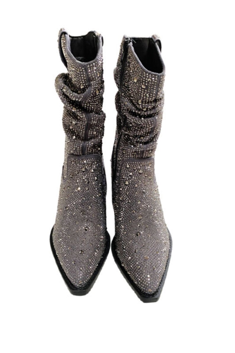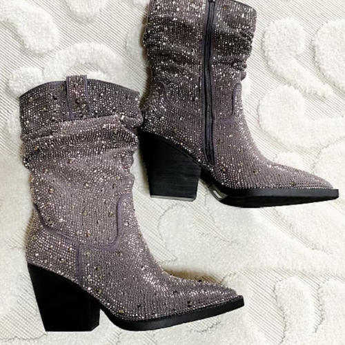 Brillez en Gris :Santiag strass femme à talon