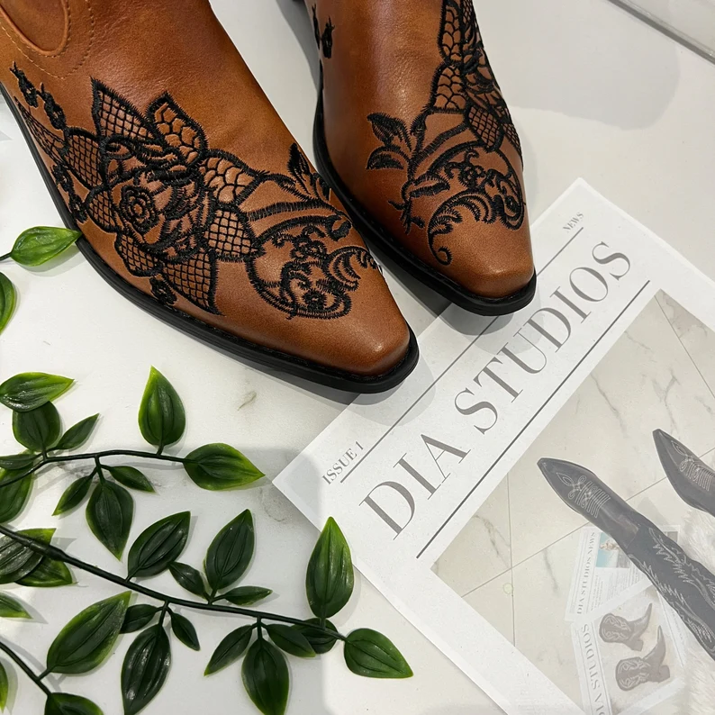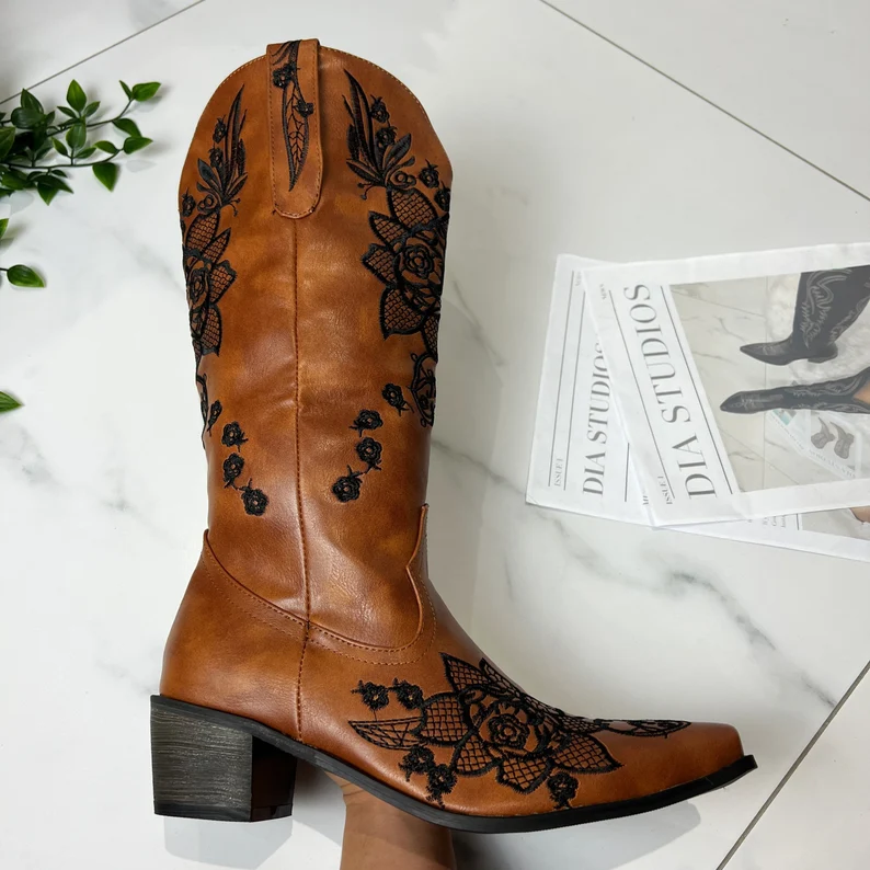 Les bottes western cowboy marron sont le choix parfait pour celles qui souhaitent incarner le charme rustique du Far West avec une touche d’élégance moderne. Fabriquées en cuir véritable, ces bottes présentent une finition marron riche qui ajoute une note de sophistication à tout ensemble. Les broderies détaillées et les coutures soignées soulignent l’authenticité du design, tandis que le bout pointu et la tige haute confèrent une silhouette élancée et gracieuse. Que vous les portiez pour une sortie en ville ou une escapade à la campagne, ces bottes sauront compléter votre look avec style.