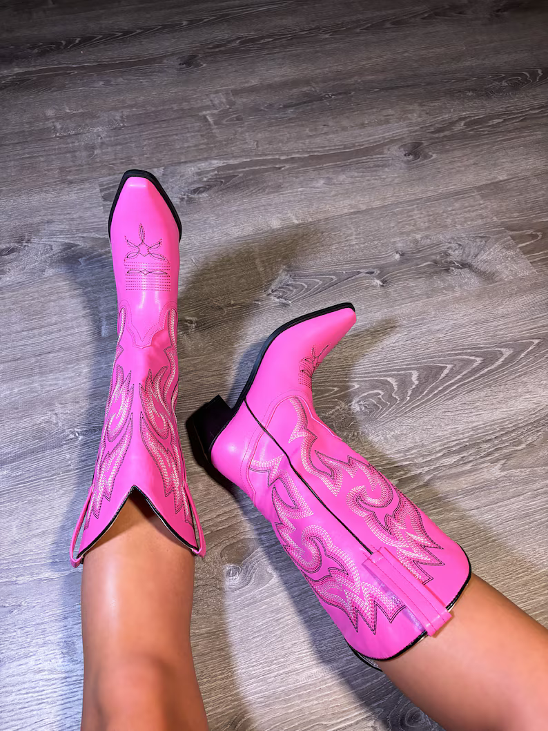Les bottes de cowgirl roses proposées incarnent à merveille l’élégance et le style du Far West. Leur couleur rose vibrante ajoute une touche de féminité tout en conservant le charme robuste et traditionnel des bottes western. Avec des détails soigneusement travaillés comme des motifs de couture contrastants et une silhouette classique, ces bottes sont parfaites pour celles qui recherchent à la fois une allure distinctive et un confort durable. Que ce soit pour une soirée en ville ou une sortie à cheval, ces bottes sont un choix polyvalent qui complétera parfaitement votre garde-robe western.