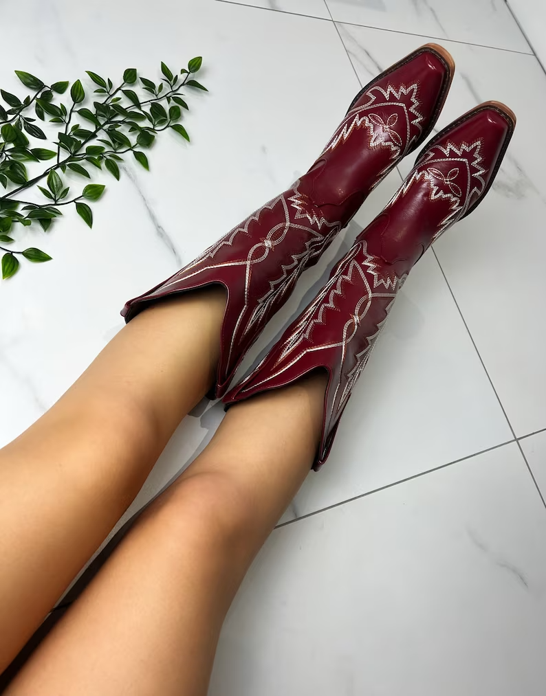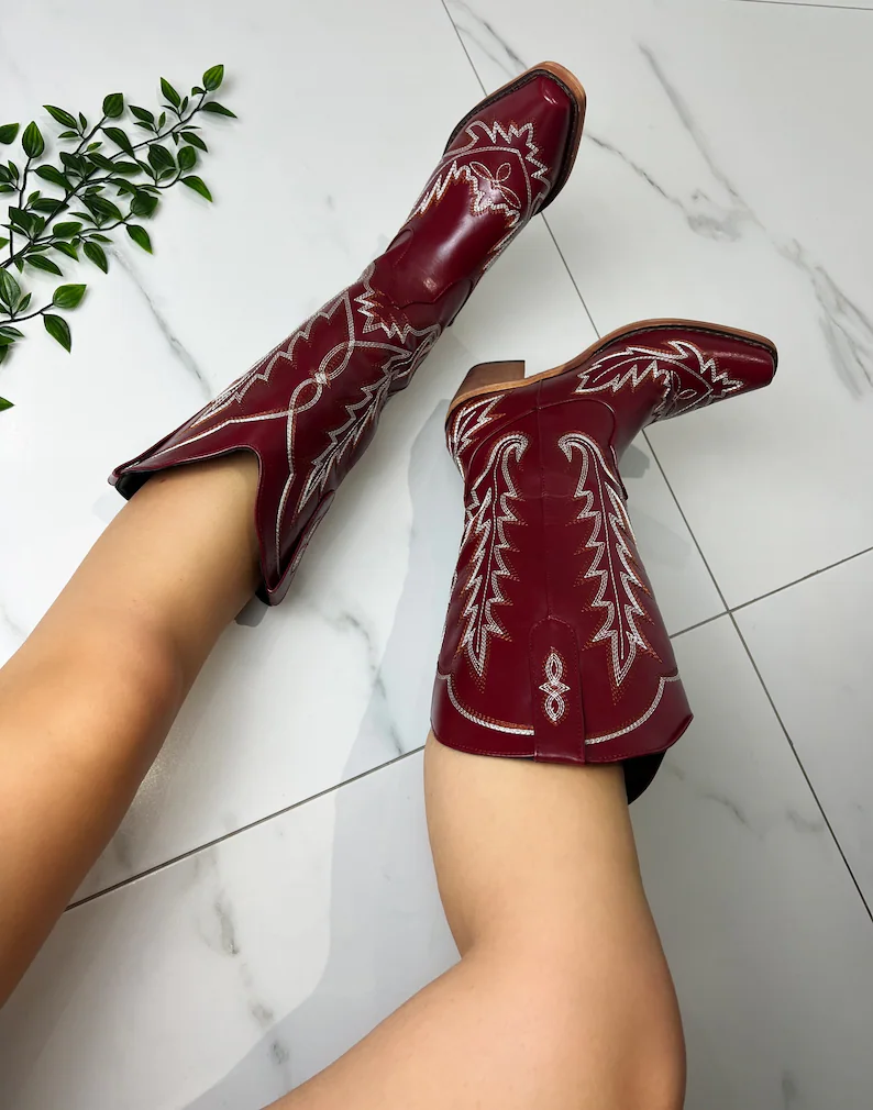 Que ce soit pour une soirée en ville, une promenade à la campagne ou un événement spécial, les bottes Western Cowboy Bordeaux Rouge sont le choix parfait. Leur design ergonomique et leur semelle robuste assurent un confort optimal tout au long de la journée. Les coutures décoratives et le talon renforcé ajoutent une touche de raffinement, tandis que la coupe ajustée garantit un maintien parfait. Polyvalentes et stylées, ces bottes complètent merveilleusement bien une variété de tenues, allant des jeans décontractés aux robes plus habillées. Investissez dans ces bottes exceptionnelles pour ajouter une pièce polyvalente et chic à votre garde-robe.